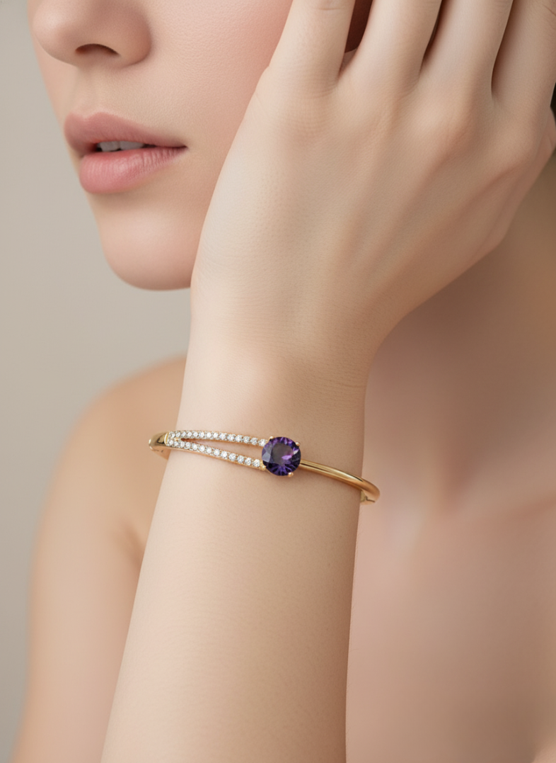 Dive into elegance with the Midnight Reverie Bracelet by KōASH. The royal purple stone shimmers like a dream caught between night and gold, a poetic expression of allure and sophistication.